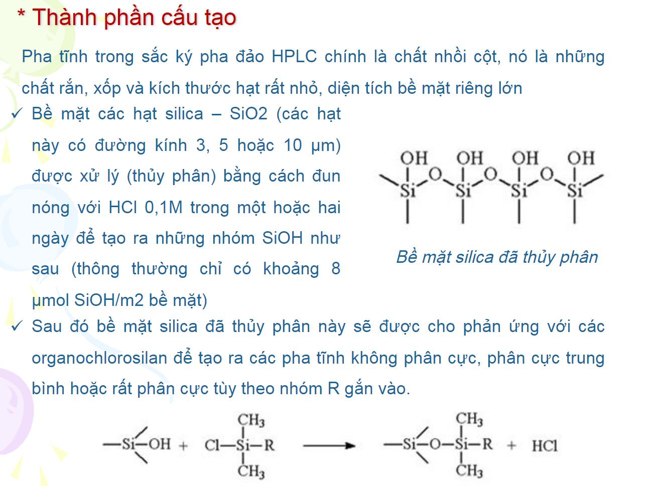 - Khó làm sạch: Một số chất phân cực có thể bám chặt vào bề mặt silica, gây khó khăn trong việc làm sạch cột.