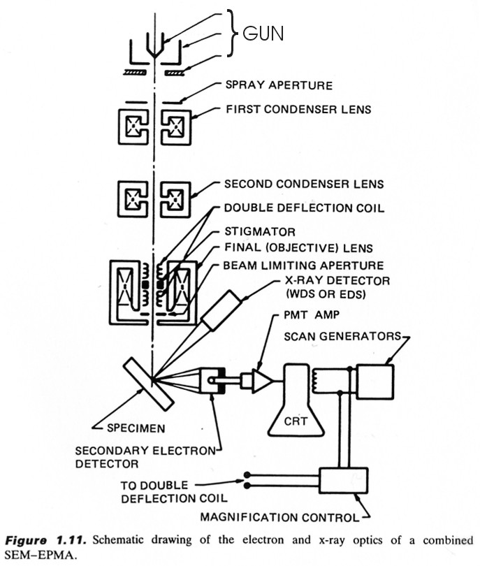 - Hầu hết các SEM sử dụng máy dò tia X trạng thái rắn (EDS), và mặc dù các máy dò này rất nhanh và dễ sử dụng, nhưng chúng có độ phân giải năng lượng và độ nhạy tương đối kém đối với các nguyên tố có mật độ thấp khi so sánh với máy dò tia X phân tán bước sóng (WDS) trên hầu hết các máy vi phân tích đầu dò điện tử (EPMA). Một lớp phủ dẫn điện phải được áp dụng cho các mẫu cách điện để nghiên cứu trong SEM thông thường, trừ khi thiết bị có khả năng hoạt động ở chế độ chân không thấp.