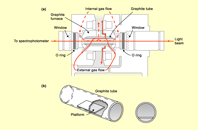 Phần phân tích chế độ ngọn lửa – Flame AA chỉ có thể phân tích các dung dịch, nhưng lò graphite có thể chấp nhận một lượng rất nhỏ dung dịch, bùn hoặc mẫu rắn.