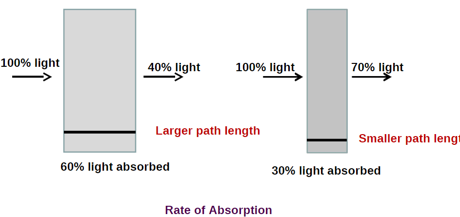 Lượng ánh sáng hấp thụ tỷ lệ thuận với độ dày (chiều dài) của vật liệu hấp thụ (Cuvette)