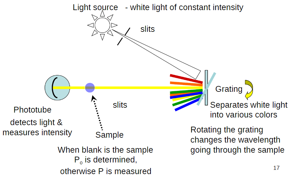 • Thoát khe – cho phép bước sóng ánh sáng được điều chỉnh đến cuvet mẫu