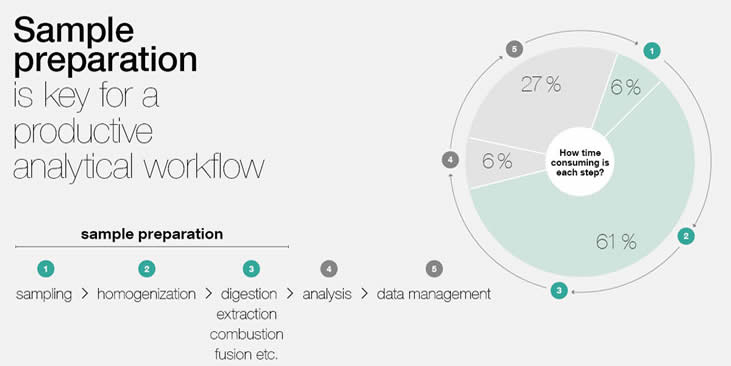 Mặc dù có nhiều tiến bộ trong những năm gần đây, việc chuẩn bị mẫu vẫn thường được coi là nút thắt trong quy trình phân tích, vì nó chiếm hơn 60% thời gian cần thiết từ khi lấy mẫu đến khi có kết quả cuối cùng (xem hình 9).