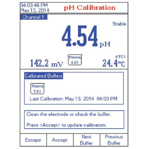 Tính năng CAL Check™ độc quyền Hanna Instruments cảnh báo người sử dụng về các vấn đề trong quá trình hiệu chuẩn như đệm bị nhiễm bẩn hoặc các đầu dò cần được vệ sinh hoặc thay mới