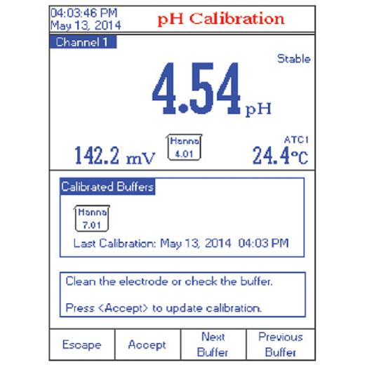 – Hiệu chuẩn pH có các tùy chọn nhận đệm tự động, bán tự động, trực tiếp và nhập bằng tay trực tiếp