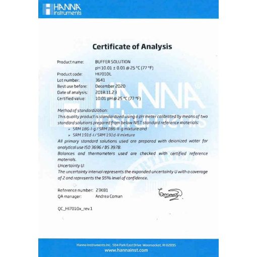 + HI7010L: pH 10.01 NIST