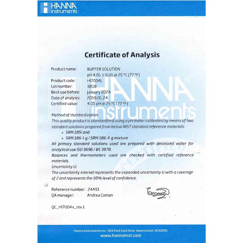 + HI7004L: pH 4.01 NIST