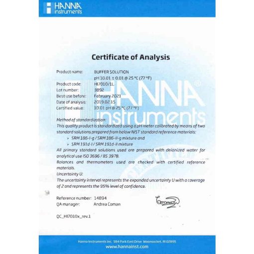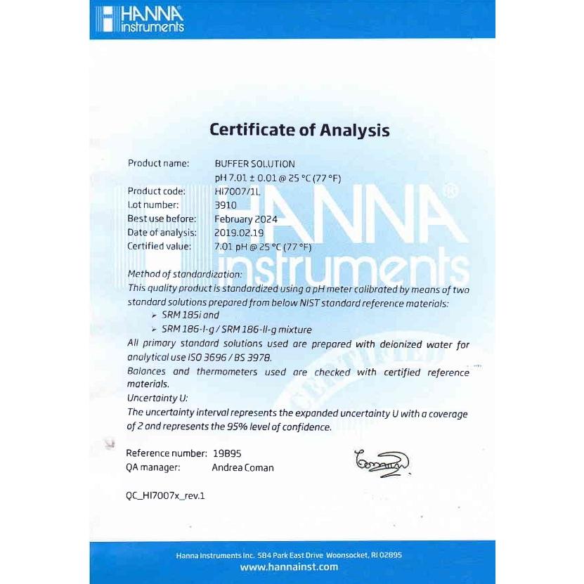 Độ chính xác @25°C: pH 4.01± 0.01, pH 7.01 ± 0.01 pH, pH 10.01 ± 0.01 pH
