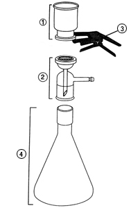 | E04-5021 | Borosilicate glass funnel, base and tubulated cap;anodized aluminum spring clamp; fritted glass filter support | ||