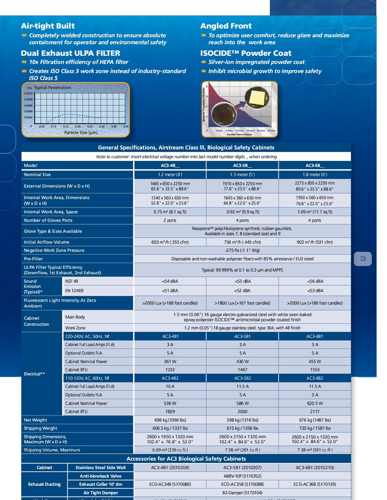 - Cabinet vận hành tại áp suất âm theo phòng thí nghiệm để ngăn chặn sự lây lan của mẫu gây bệnh ra khỏi khu vực làm việc