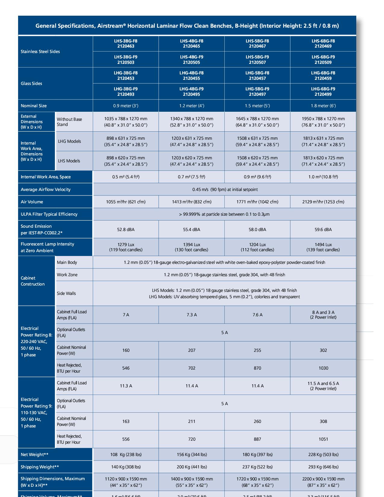 | LVS-3_G-F8 | 1035 x 784 x 1270 mm (40.8” x 30.8” x 50.0”) | —- | —- | 917 x 688 x 689 mm (36.1” x 27.0” x 27.1”) | —- | —- | 0.45 m/s (90) fpm at initial set point | 230 V 50/60 Hz |