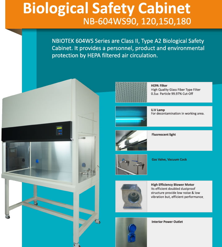 - Tủ có hiệu xuất cao với màng lọc HEPA bằng sợi thủy tinh (với 30% lượng khí thoát ra và 70% lượng khí tuần hoàn bên trong tủ)