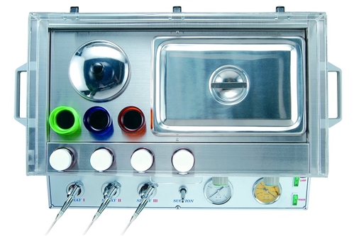 - Nắp che bụi bằng chất liệu acrylic trong suốt phía trên có thể bảo vệ sung phun và cổng gắn hút dịch, nhờ đó thiết bị và thuốc không bị nhiễm bẩn.